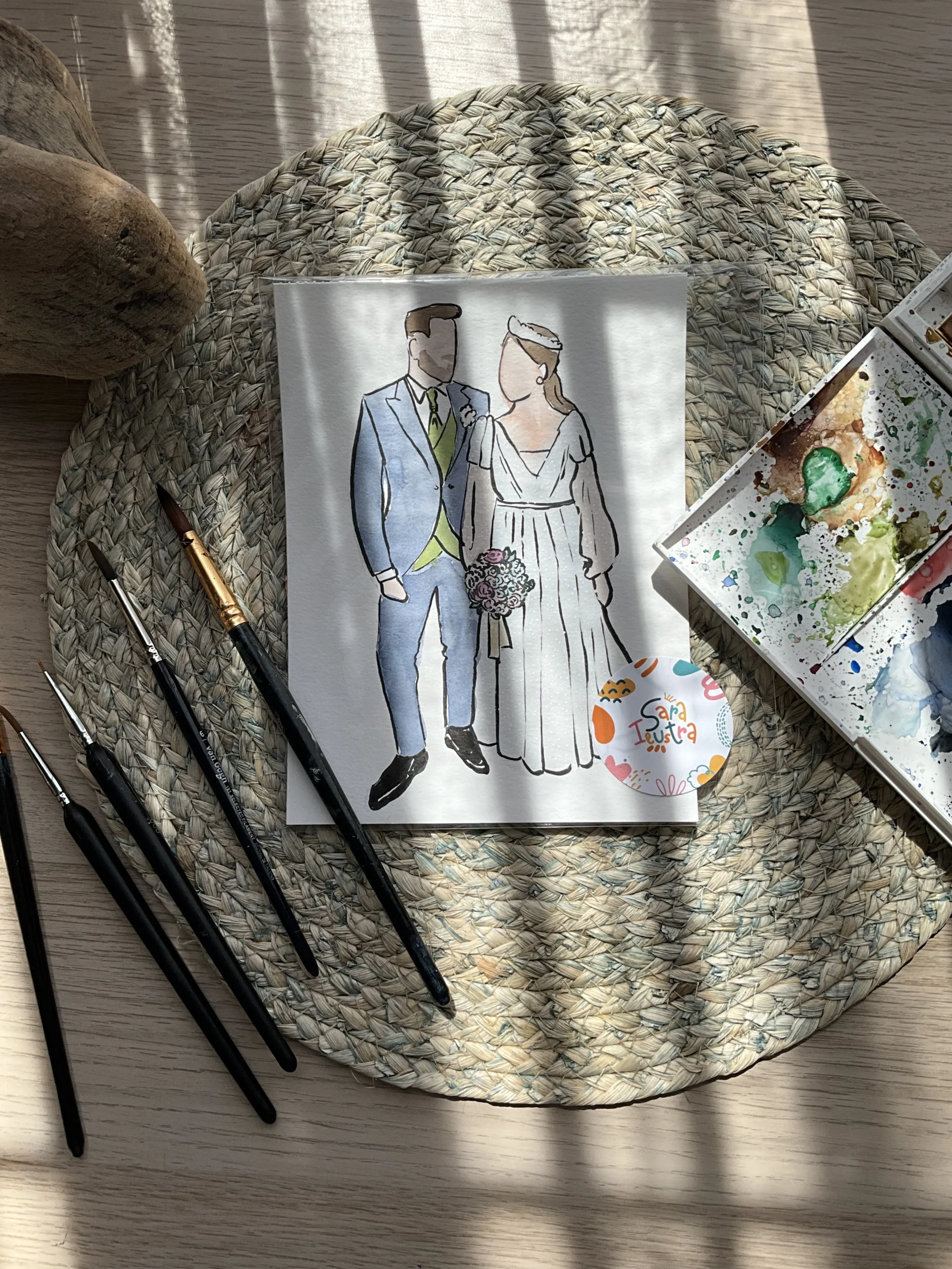 Live Painting para Bodas Se trata de un servicio de animación, de arte en directo en el que los invitados podrán verme pintar y aquel que lo desee podrá llevarse un retrato en acuarela hecho al momento.