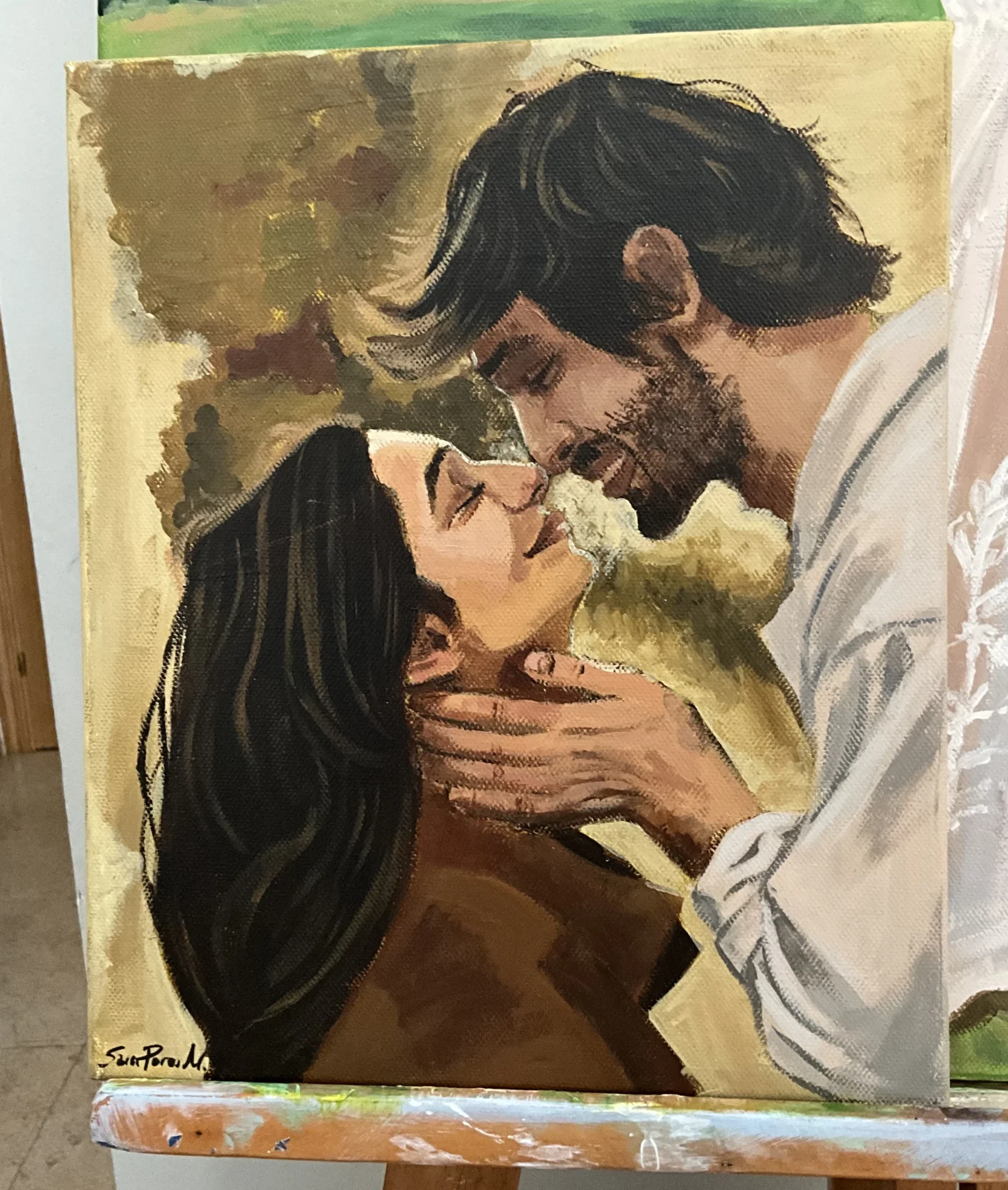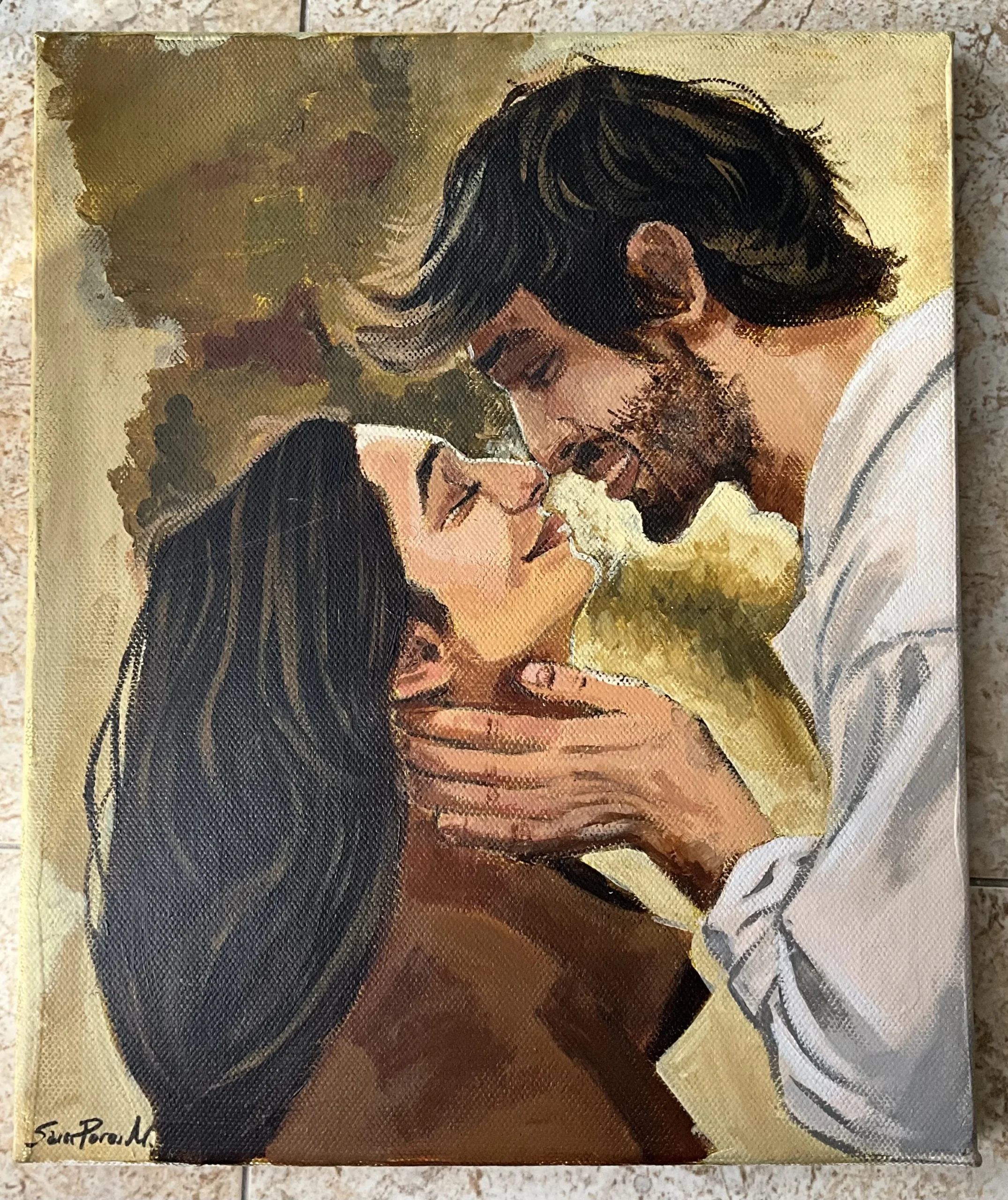 La Tienda de Sára Pérez IlustraRetrato de dos personas en primer plano, 25×30 cm, acrílico sobre lienzo