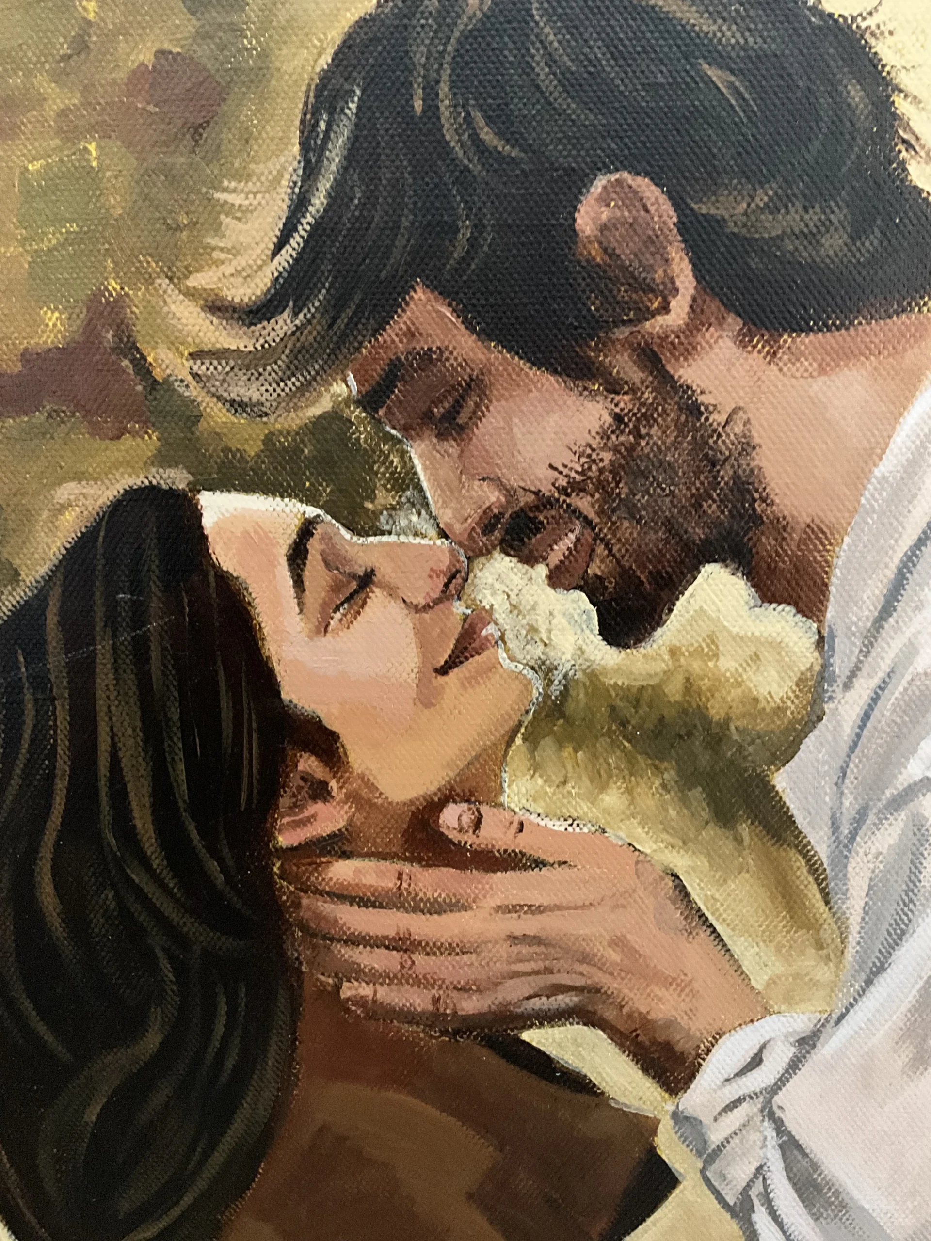 Retrato de dos personas en primer plano en lienzo de 25×30 cm para que puedas regalar a esa persona especial.